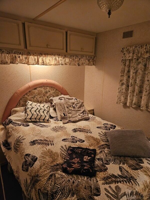 Domek po zakupie został uszczelniony. Sprzęty w domku typu lodówka , mikrofala działające (korzystaliśmy z nich). Domek posiada salon jadalnie i kuchnię oraz jedna sypialnię. Dzięki temu, że jest jedna sypialnia , domek na dużą łazienkę z umywalką, kabina prysznicową i WC..