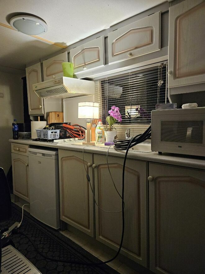 Do uzyskania ciepłej wody kupiliśmy 15 litrowy podgrzewacz pojemnościowy zainstalowany w szafce kuchennej pod zlewozmywakiem. Domek oprócz miejsca na przechowywanie w szafkach posiada schowki pod kazdą kanapą i narożnikiem.